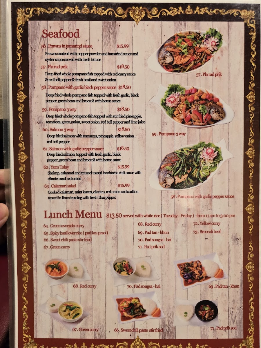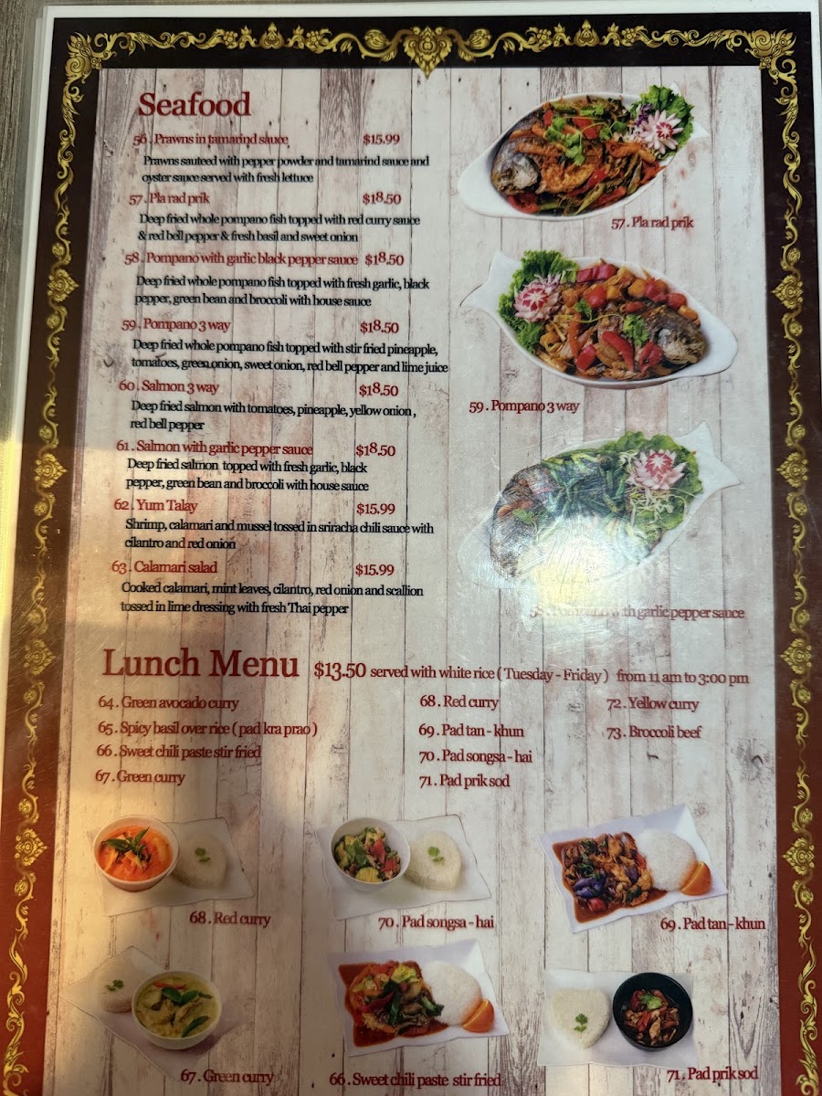 In addition to the sumptuous entrees, the restaurant also offers a selection of refreshingly unique beverages including traditional Thai Tea and iced coffee options. You might find yourself unwinding with a perfect Thai iced coffee that pairs beautifully with your meal, as recommended by Jeremiah Jacobs, who also raved about the delicious mango sticky rice—a true must-try! Whether you're new to Thai cuisine or a seasoned aficionado, each dish presents an unforgettable experience filled with authentic flavors that beckon you to return again and again.